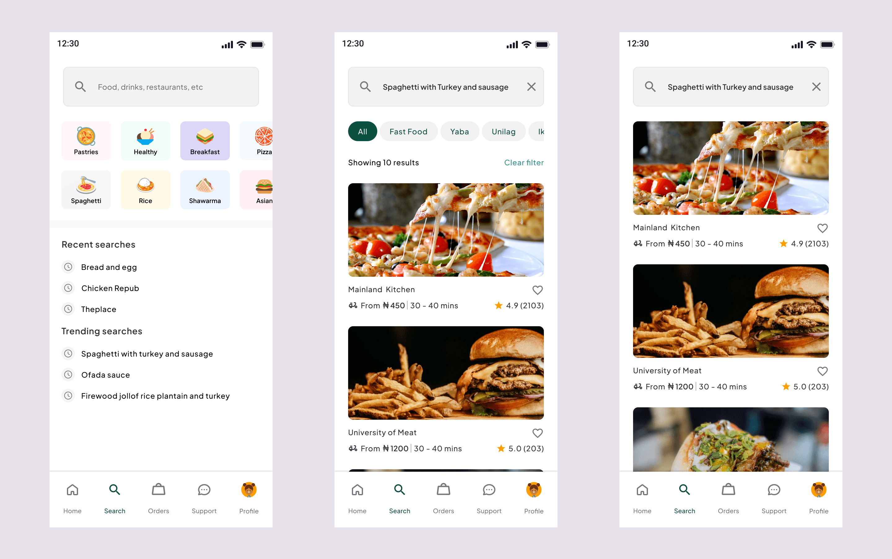 The search screen empowers users to quickly find their desired restaurants and dishes. A search bar with auto-suggestions makes it easy to look up specific cuisines, restaurants, or menu items. The search screen provides a user-friendly way to explore a vast range of dining choices and discover hidden culinary gems.