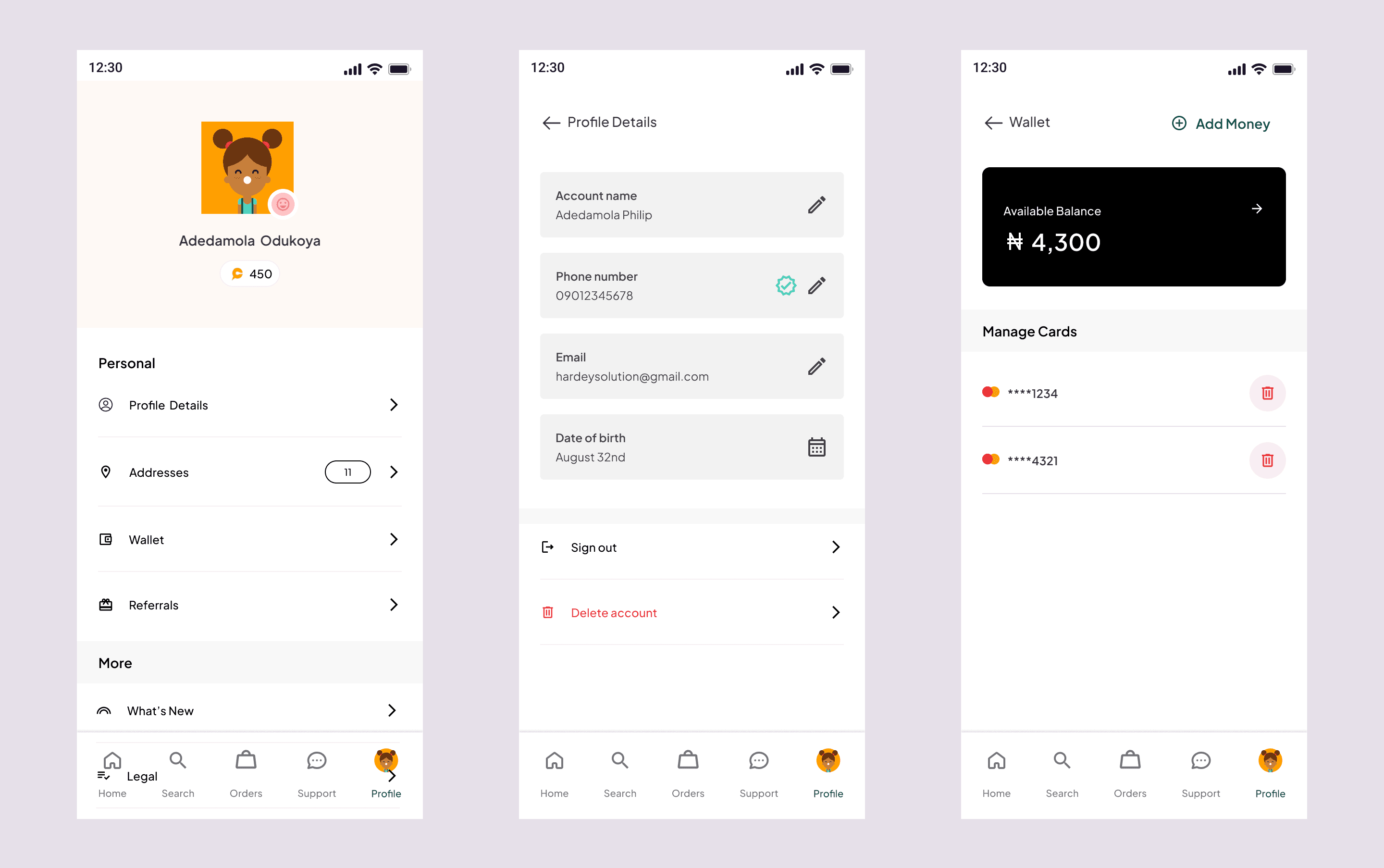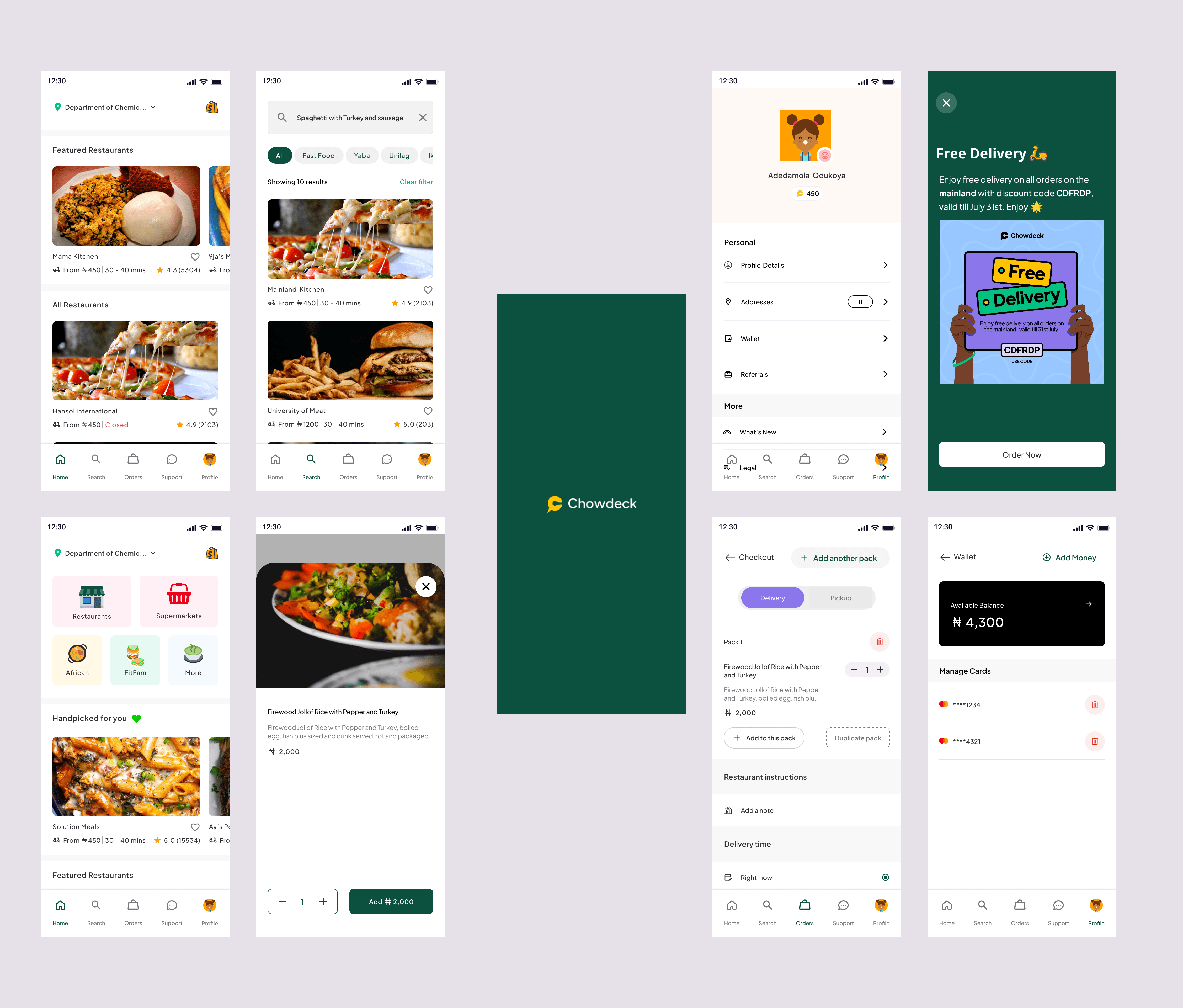 The profile screen within the ChowDeck app serves as a personalized hub for users to manage their account, preferences, and wallet. Here, users can access and update their personal information, including name, contact details, and delivery addresses.