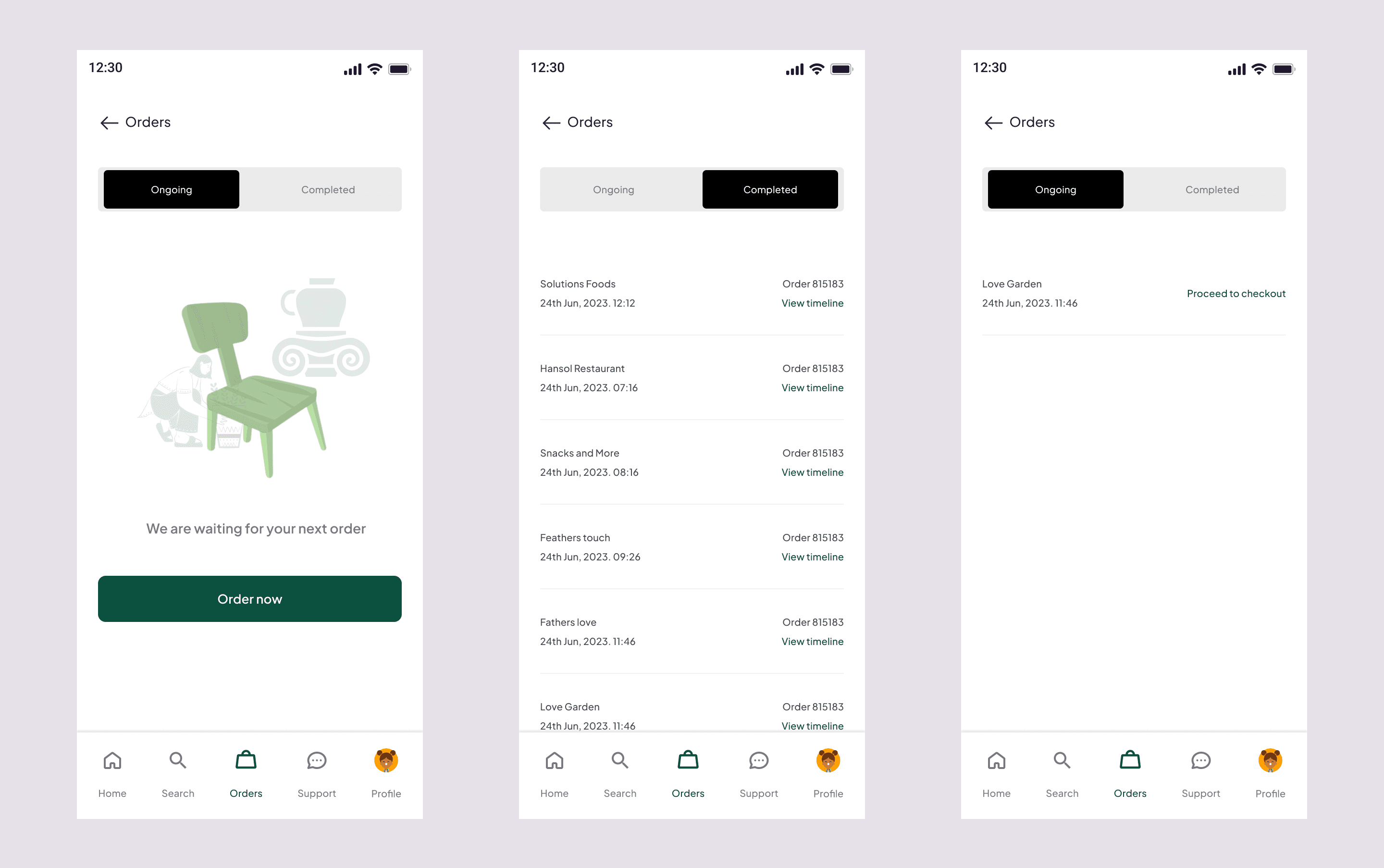 Order details screens