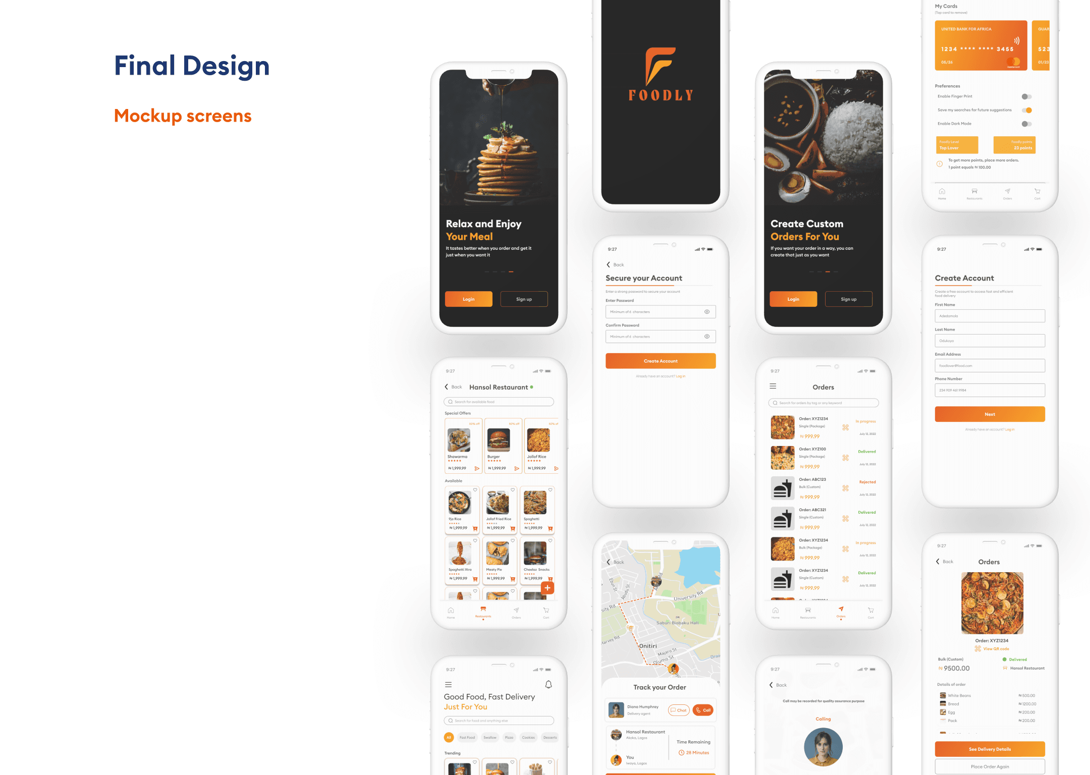 Foodly is a food delivery mobile application that aims to solve the major painpoints of users of delivery services in metropolitan areas where such services are required. Users can choose which rider to deliver based on trust (or any other reason), can order custom foods (if allowed by the restaurants), can identify available foods and additions as necessary.